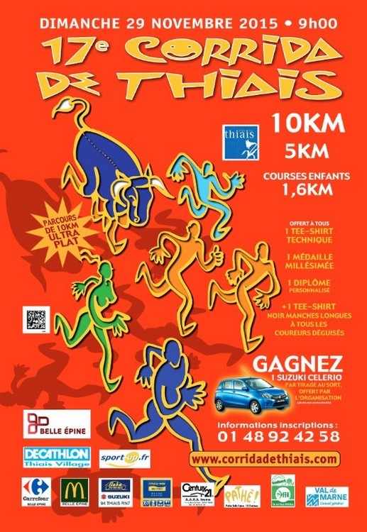 La 17 ème corrida de THIAIS dans le val-de-Marne était prévue le 29 novembre mais elle a du être déplacée à ce dimanche 31 janvier en raison des événements tragiques parisiens .
